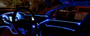 A fibra óptica interna é um recurso de iluminação utilizado para criar efeitos luminosos personalizados. Nesse serviço, pequenas fibras ópticas são colocadas no interior do veículo.